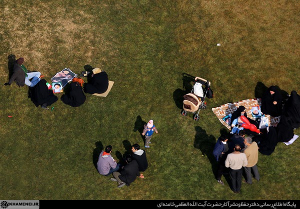 خانواده‌ای جوان را دیدم. خانواده آقای موذنی با دو فرزند خردسال آمده بودند. از پدر خانواده درباره مشکلات اقتصادی پرسیدم. گفت "بسیار مشکل اقتصادی دارم و کارگر هستم و در روز اغتشاشات آسیب دیدیم اما حضور در این راهپیمایی فرق می‌کند. هر سال آمده‌ام امسال هم آمدم تا بگویم اگر مشکل داریم چشممان به مردم خودمان و درایت دولت و رهبری است". مادر خانواده گفت "آمده‌ام به حضرت آقا بگویم دو فرزند دارم که می‌خواهم سربازان تو باشند".