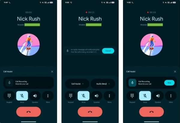 کاربران برای استفاده از ویژگی یادشده پساز فعالسازی باید به تنظیمات اپلیکیشن تلفن (Phone) بروند و بخش Call Recording را برای دانلود و راهاندازی انتخاب کنند. در مرحلهی بعد، با بازکردن منوی Call Assist هنگام مکالمه، عملیات ضبط آغاز خواهد شد. علاقهمندان همچنین میتوانند گزینهی «ضبط خودکار تماسهای افراد ناشناس» را روشن کنند یا شمارههای خاصی را برای ضبط همیشگی در نظر بگیرند.